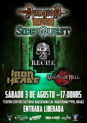Una segunda version del Dungeon Fest se avecina y esta vez trae consigo dos bandas de Santiago, Mouth of Hell con un sonido violento y agresivo no excento de tecnica y harmonías y Reche, banda con amplia trayectoria que destaca por sus letras con alto contenido social y un sonido clasico, propio del metal norte americano. La tercera banda en escena seran los regionales Iron Heade, quienes estaran mostrando nuevo material cargado de heavy metal tradicional.