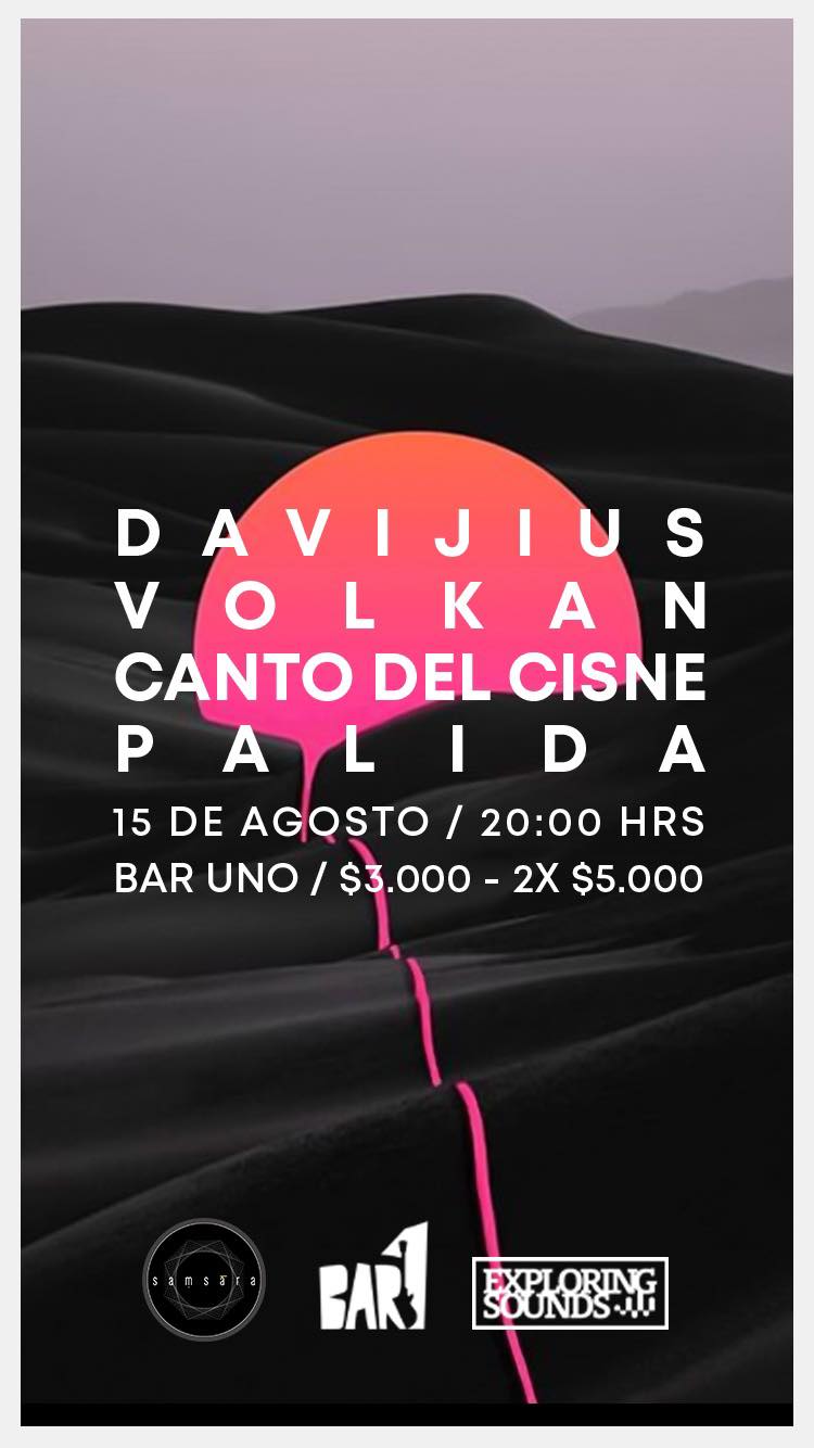 En esta ocasión, se presentarán PALIDA (proyecto solista de música electrónica, post-rock y emo), Canto del Cisne (proyecto solista de música ambient y dream pop que mostrará nuevo material de su próximo disco «Onírica»), Davijius (banda de post-rock, ambient y música incidental) y Volkan (banda que mezcla en su propuesta noise, shoegaze y post-rock) en una fecha que promete estar inmersa en una mezcla de sonidos profundos y espaciales.